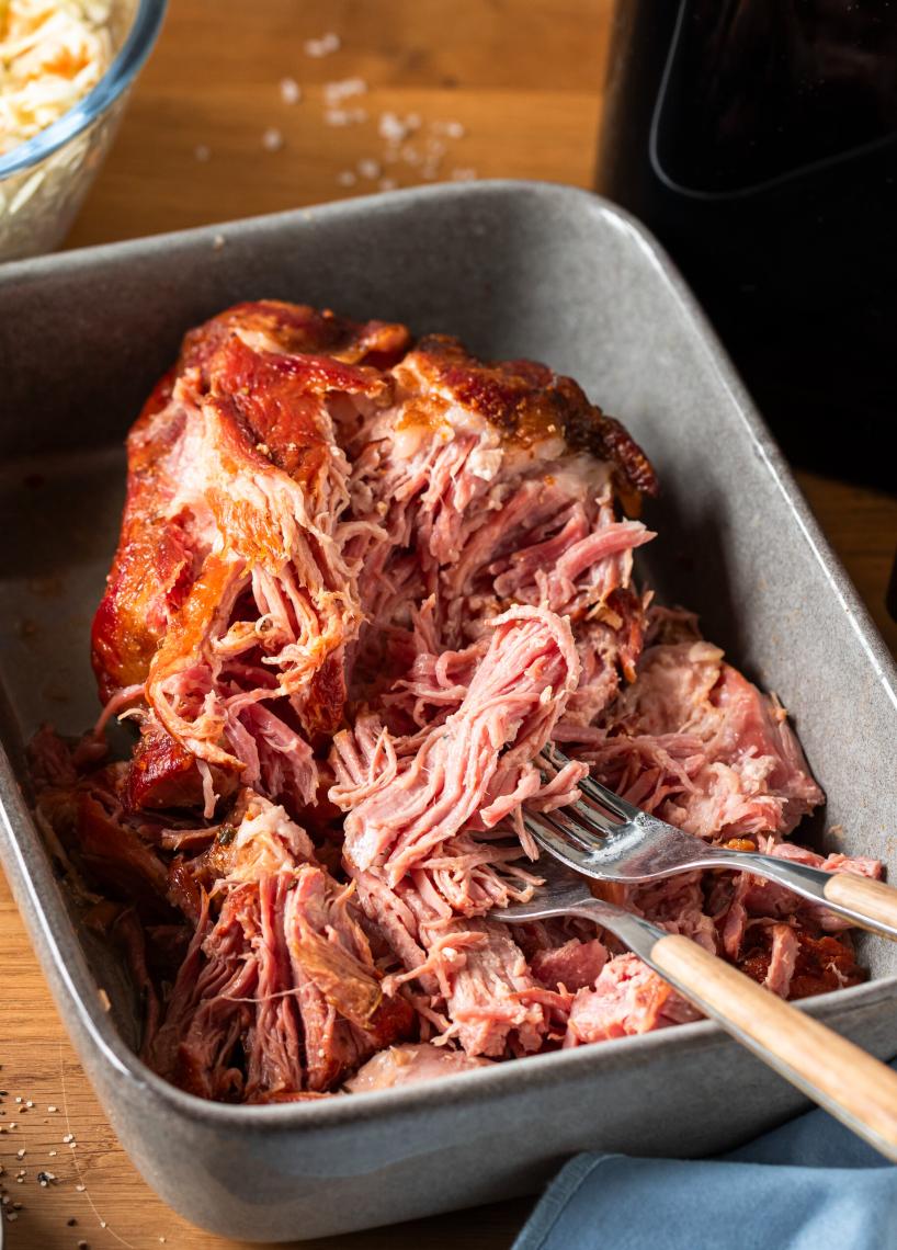 So zart hast du Kassler noch nie gehabt: Mit diesem Airfryer-Rezept gelingt dir saftiger Zupfkassler ganz unkompliziert. Die Kombi aus BBQ-Gewürz und Apfelsaft macht das Fleisch richtig aromatisch – ohne stundenlang am Herd zu stehen. Zupfen, Coleslaw drauf, fertig ist dein deftiger Alltagsheld. Probier’s aus, wenn du mal wieder Lust auf was Herzhaftes hast.